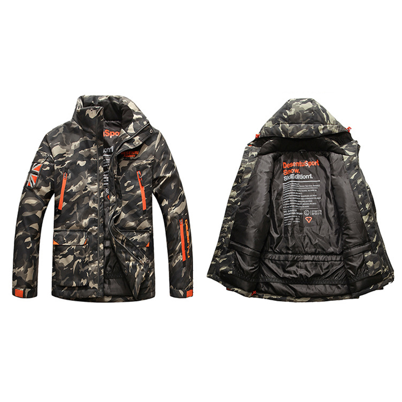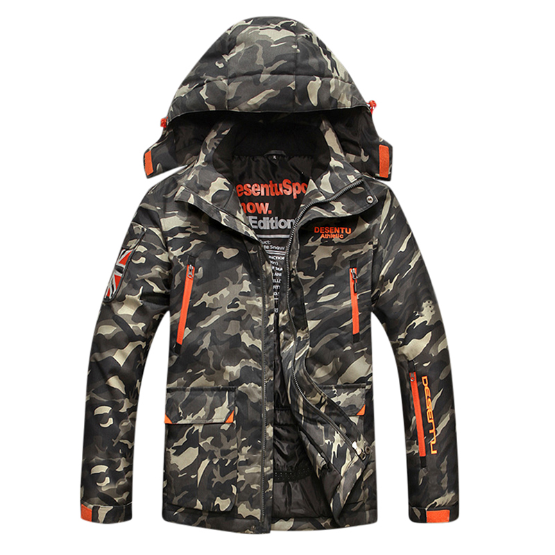 Mens Camo Printing Detachable Hooded Multi Pockets Outdoor Windproof Thickened Warm Jacket