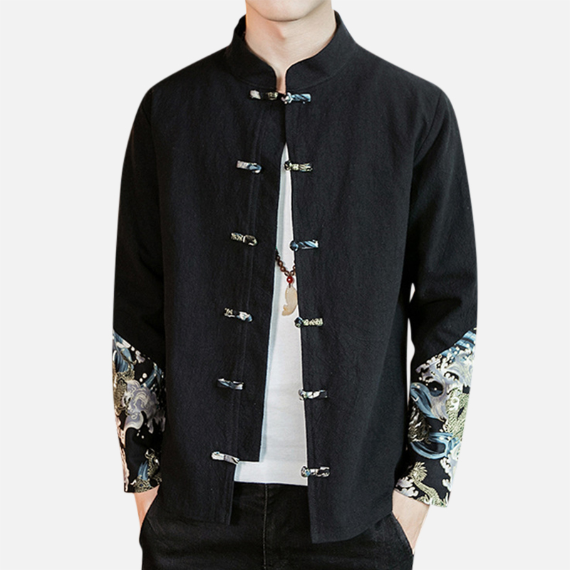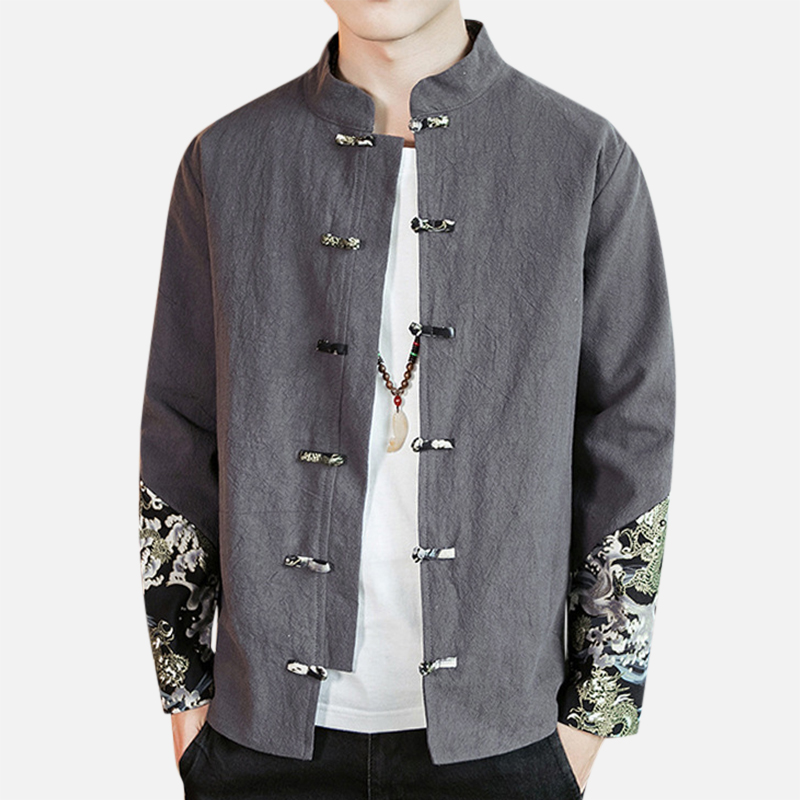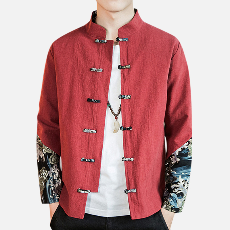Mens National Style Coat Floral Printing Patchwork Linen Double Breasted Casual Jacket
