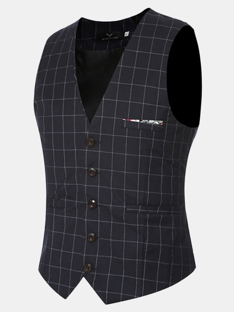 Fashion Wedding Dress Plaid Vest Slim Fit Business Suit Vest For Men