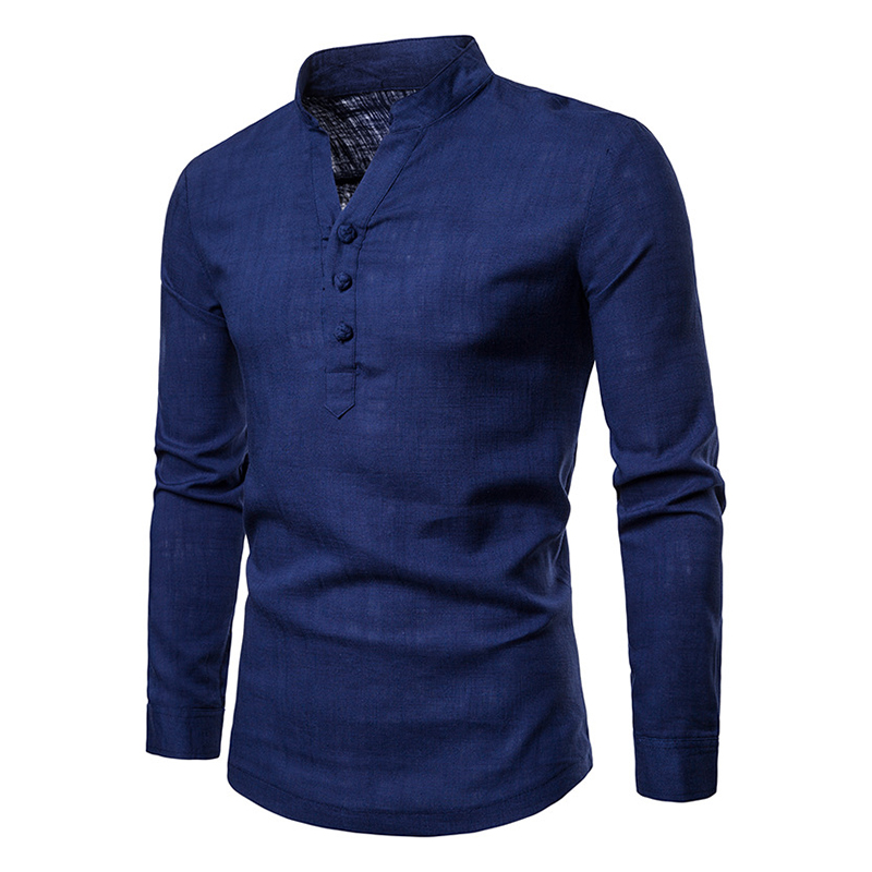 Mens Breathable Thin Stand Collar Solid Color Slim Fit Casual T Shirts