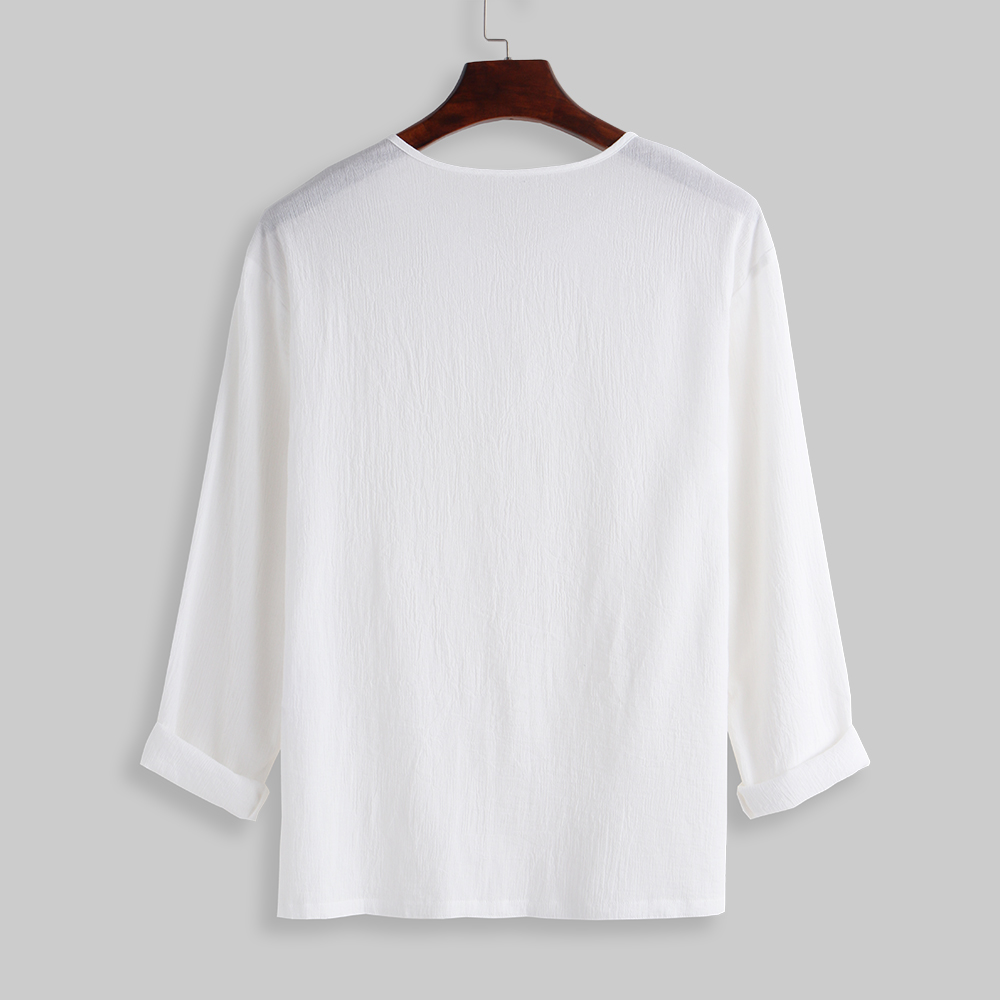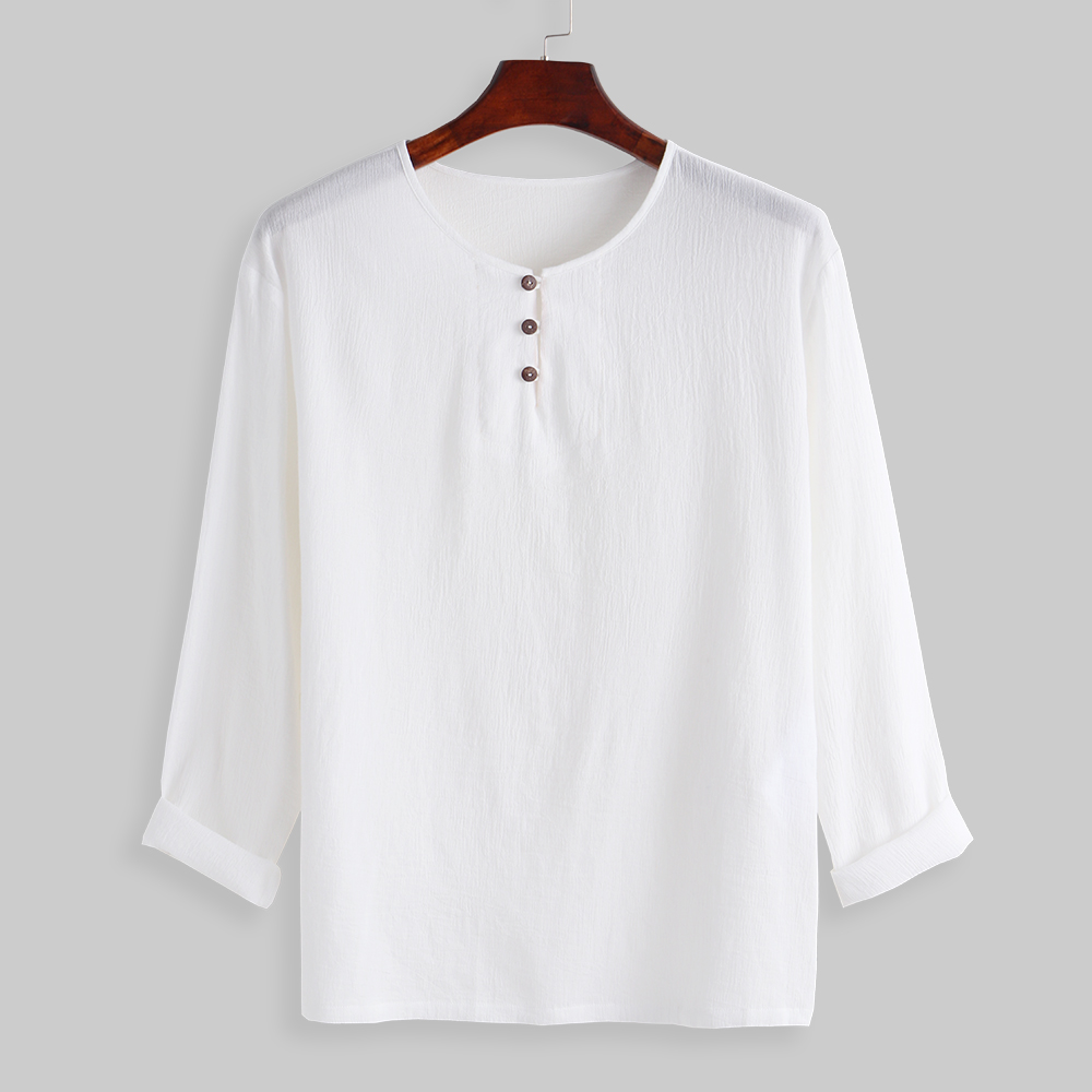 Mens Loose Brief Solid Color Breathable Long Sleeve Thin Casual T shirt
