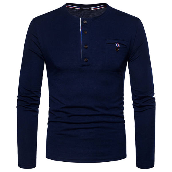 Mens Stylish Buttons Decoration Half Cardigans Long Sleeve Slim Fit Casual T Shirts
