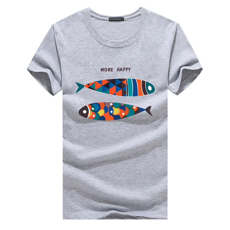 Mens Fish Printed O-neck Short Sleeve Summer Casual T Shirts