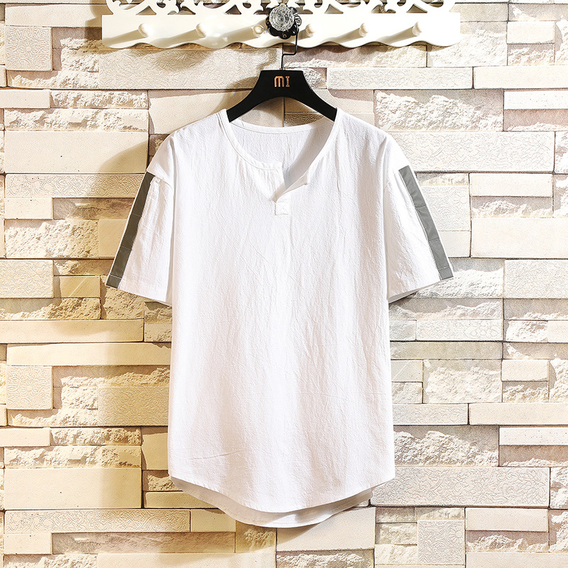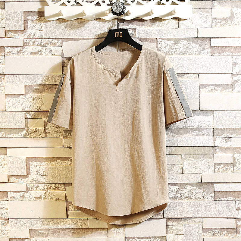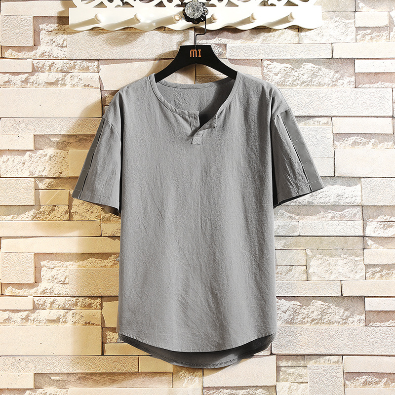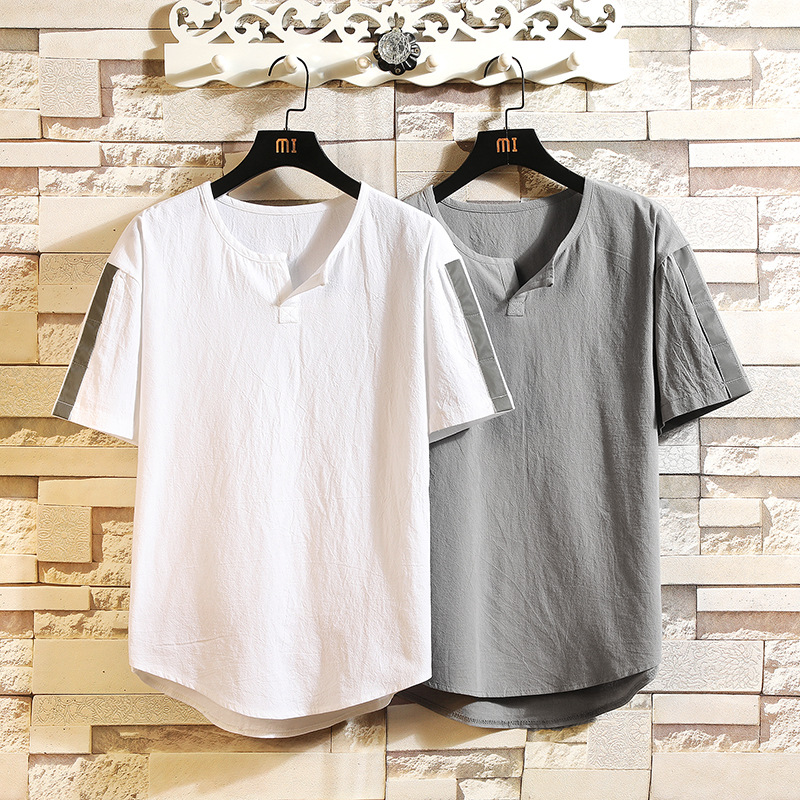 Mens Cotton Linen T-shirt Vintage V-neck Chinese Style Half-Sleeve Tops