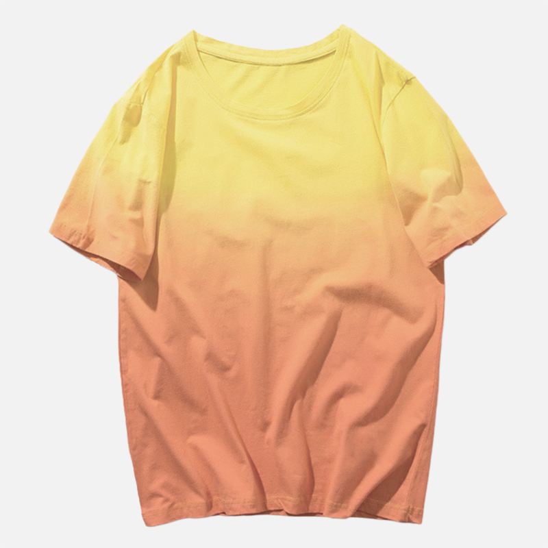 Mens Gradient Ramp Colour O neck Short Sleeve Loose Casual T shirt