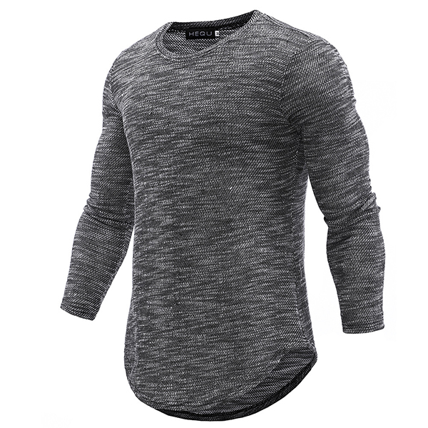 Mens Knitting Tops Solid Color Long-Sleeved O-Neck Regular Fit Casual T shirt