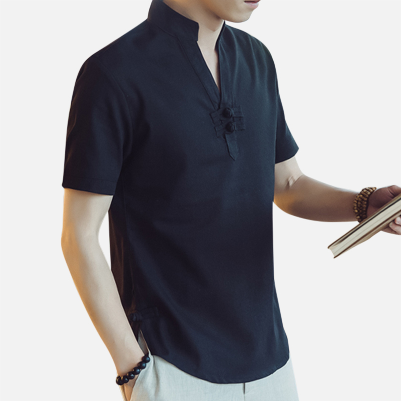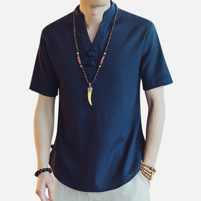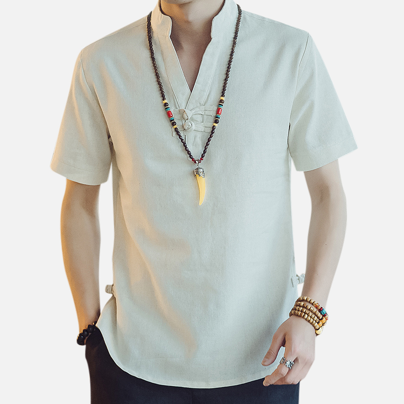 Mens National Style Cotton Linen Summer Short Sleeve Casual T shirt