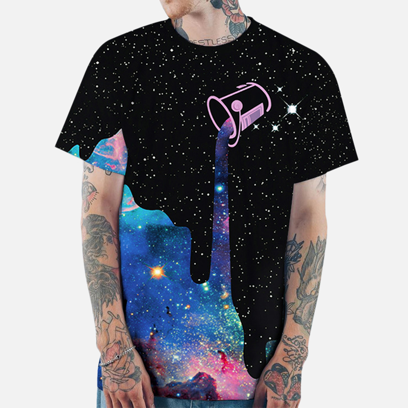 Mens's 3D Printed Colourful O-neck Short Sleeve Loose T-shirt
