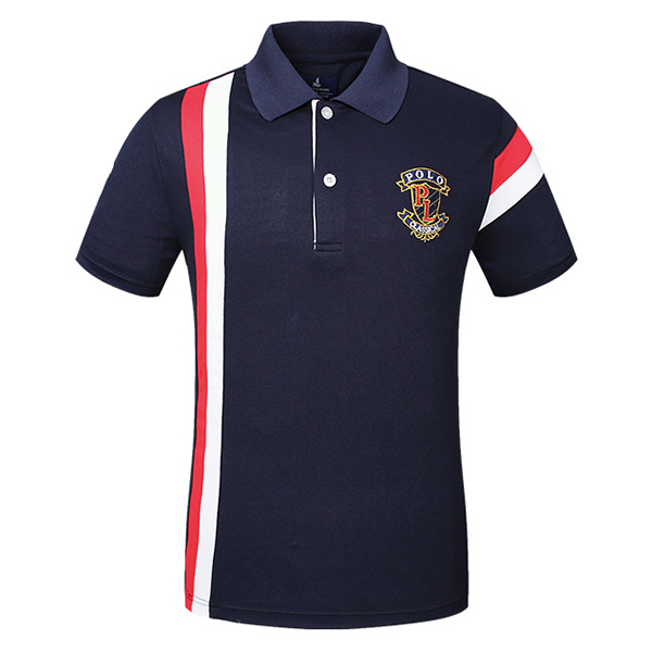 Mens Summer Breathable Embroidery Patchwork Business Casual Golf Shirt