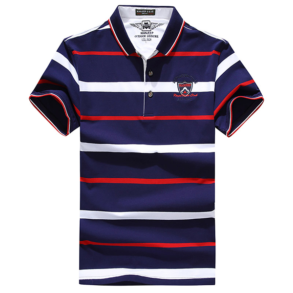 Mens Stripes Pattern Golf Shirt Short Sleeve Spring Summer Casual Tops