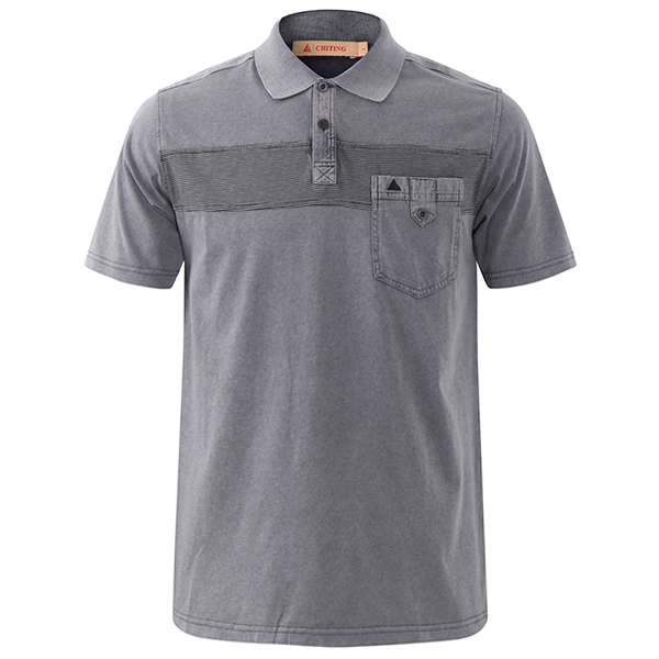 Mens Summer Cotton Front Pocket Turn-down Collar Short Sleeve Casual Golf Shirt
