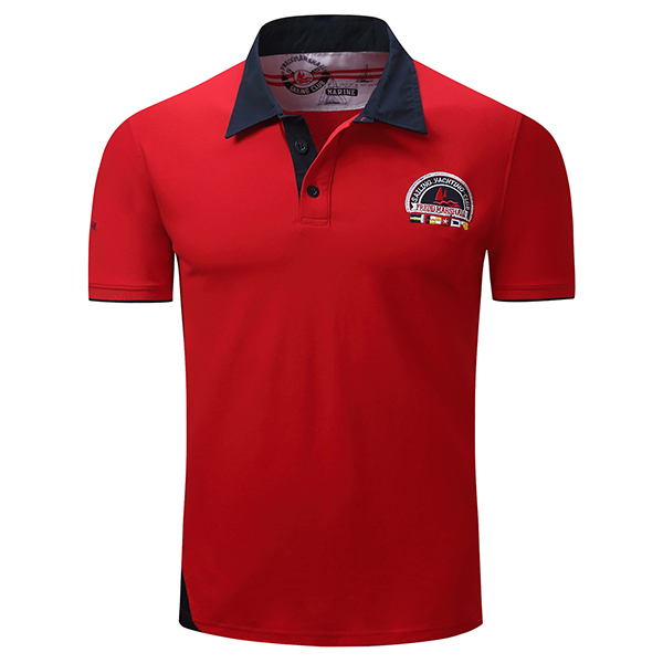 Mens Spring Summer 100%Cotton Embroidery Turndown Collar Short Sleeve Casual Golf Shirt