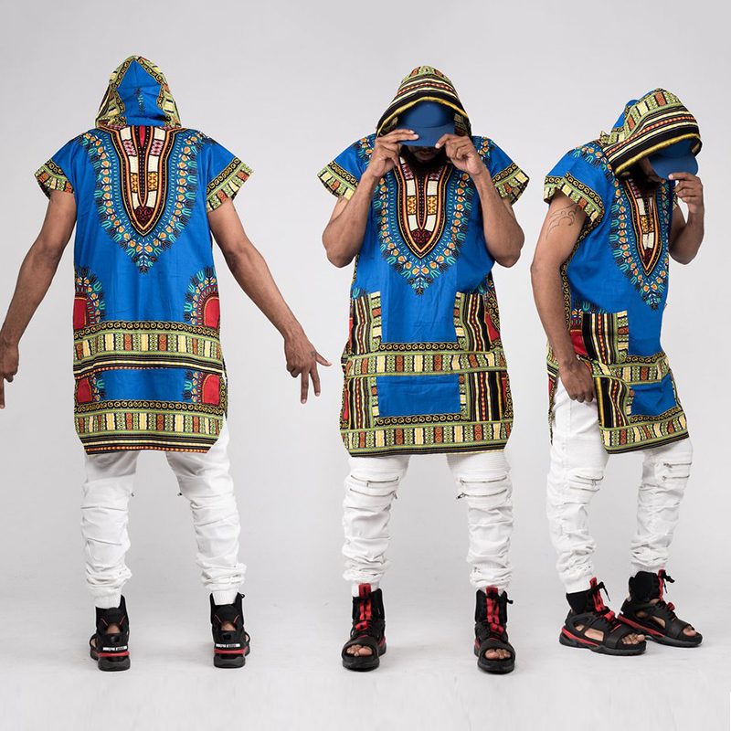 Mens National Style Printing Hooded Short Sleeve Casual Mid-long Hoodies T shirt
