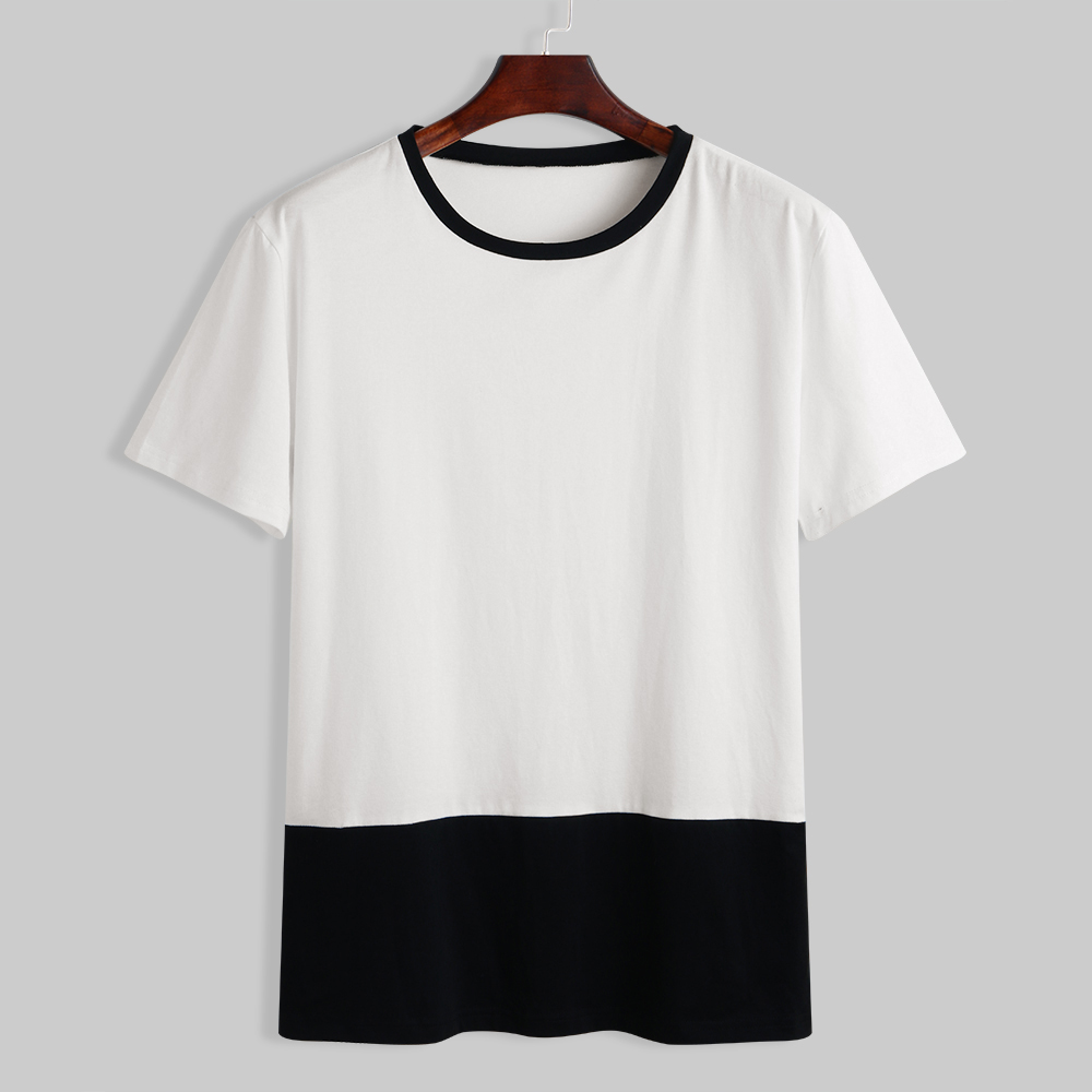 Mens 100% Cotton Breathable Contrast Color Short Sleeve Casual T-Shirts